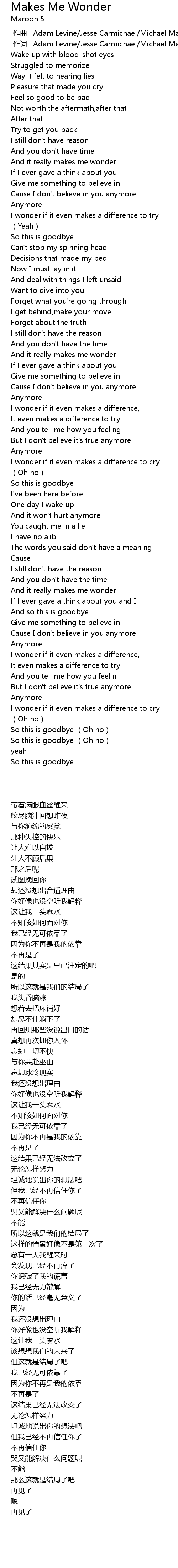 | [00:01.00] | 作词 : Adam Levine/Jesse Carmichael/Michael Madden |