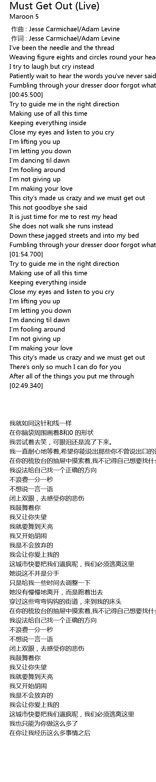 | [00:00.00] | 作曲 : Jesse Carmichael/Adam Levine |