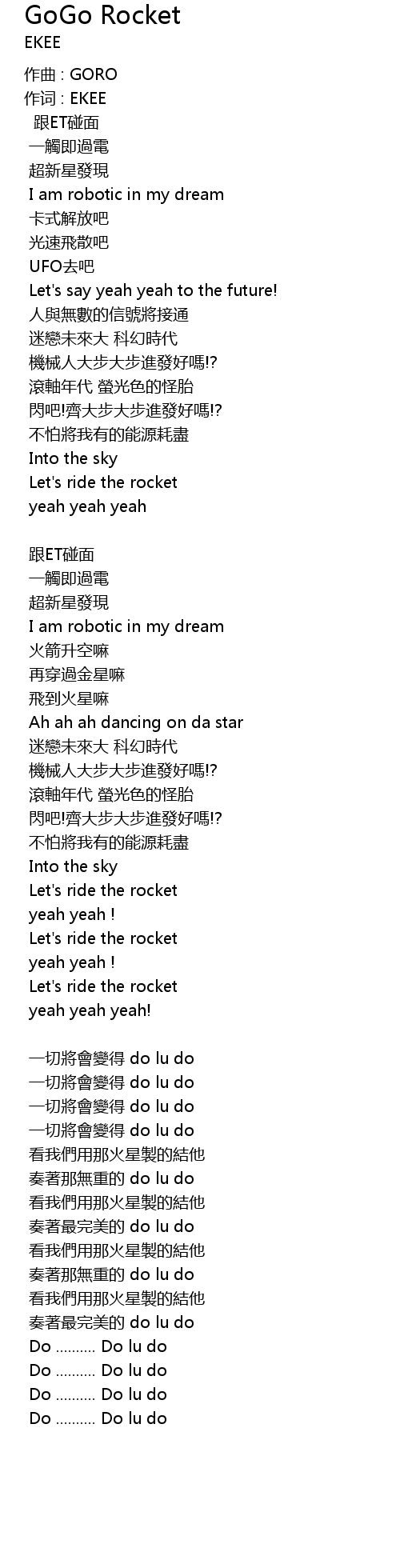 | 歌曲 | GoGo Rocket |