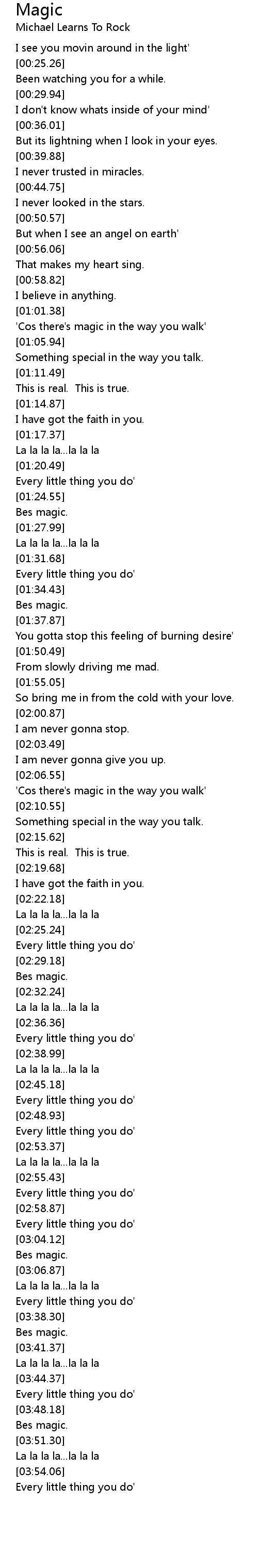 'Cos there's magic in the way you walk' |