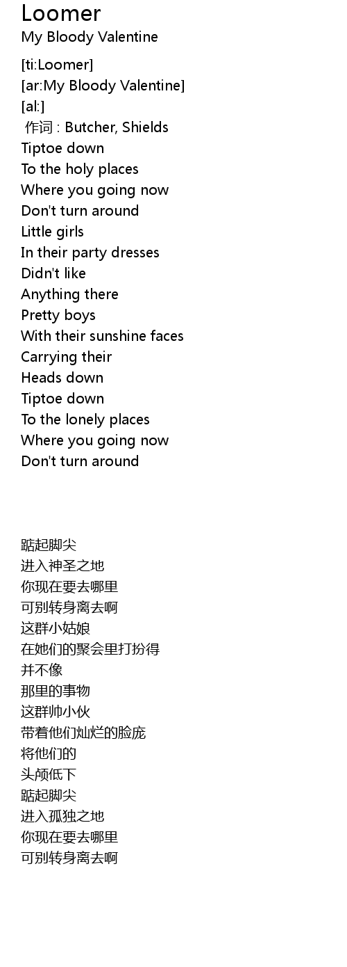 | [00:00.00] | zuò cí : Butcher, Shields |