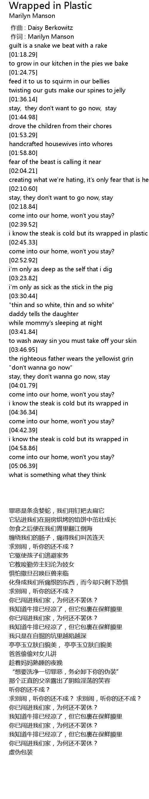 | [00:01.00] | zuò cí : Marilyn Manson |