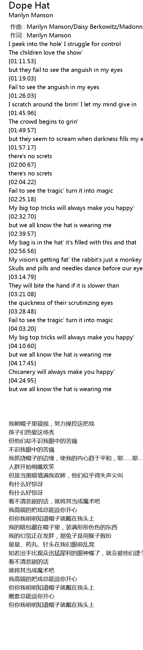 | [00:01.00] | zuò cí : Marilyn Manson |