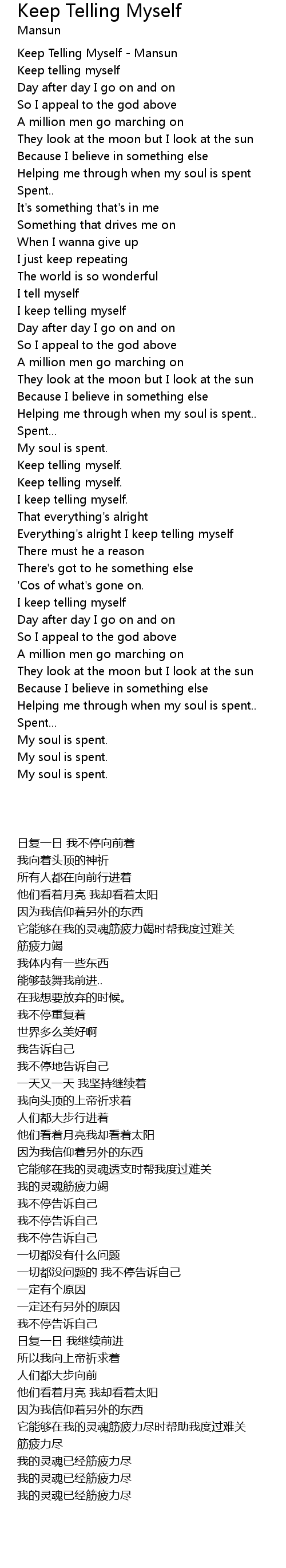 Helping me through when my soul is spent..