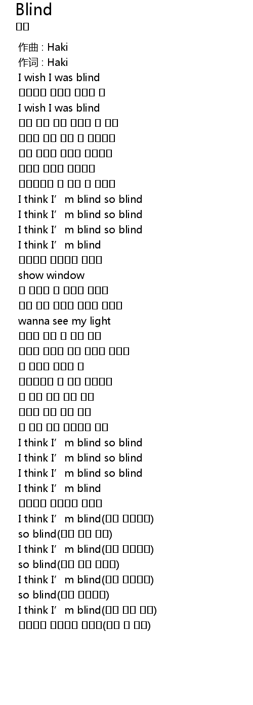 | [02:24.284] | I think I' m blind so blind |
