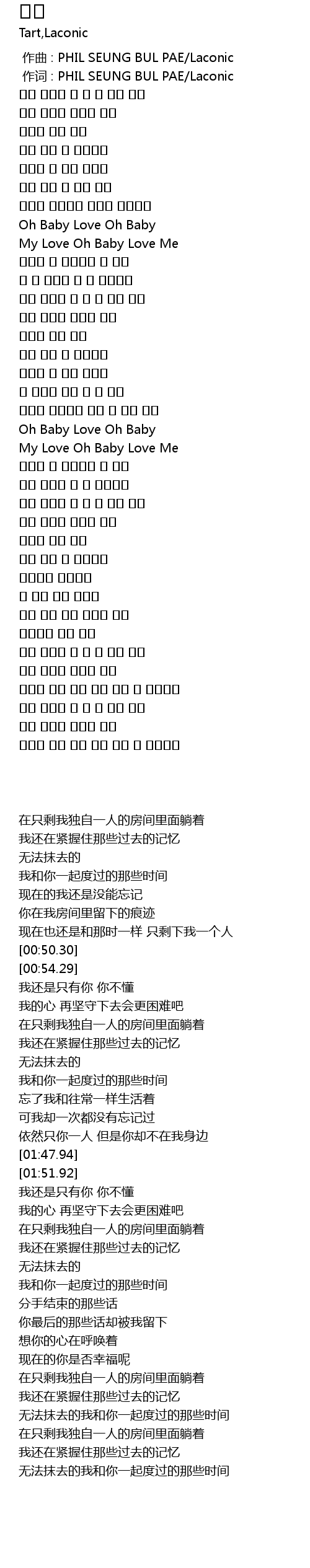 | [00:01.000] | 作词 : PHIL SEUNG BUL PAE/Laconic |