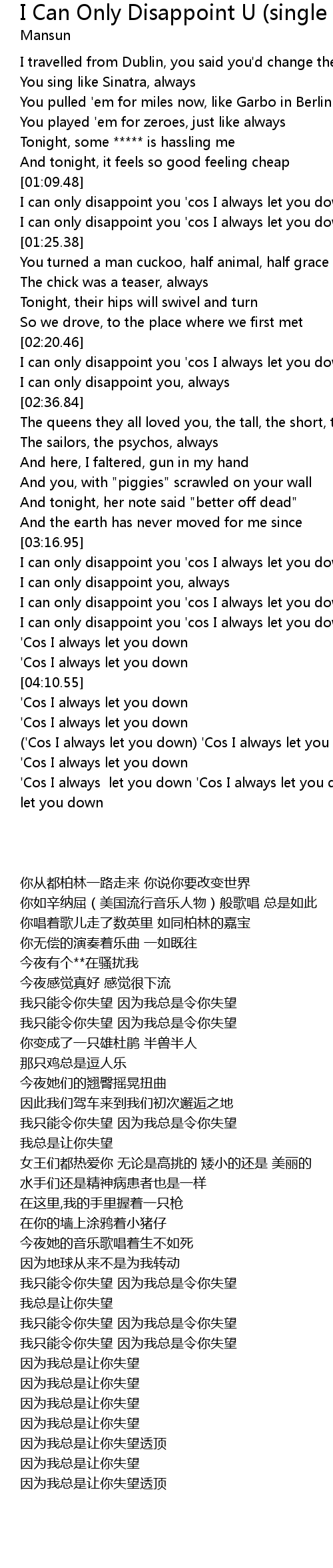 I can only disappoint you 'cos I always let you down |