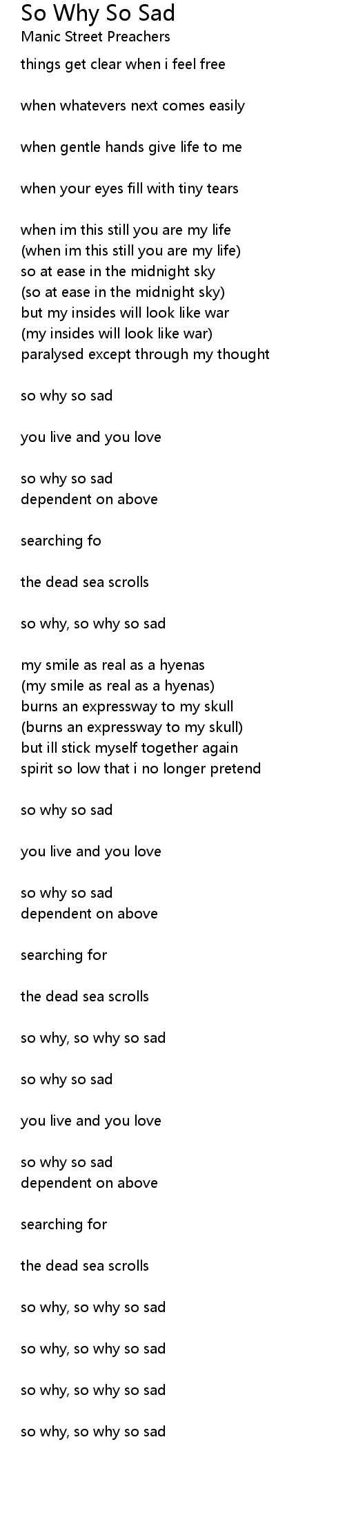 so why, so why so sad |