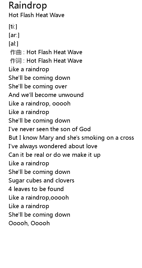 | [00:01.000] | 作词 : Hot Flash Heat Wave |