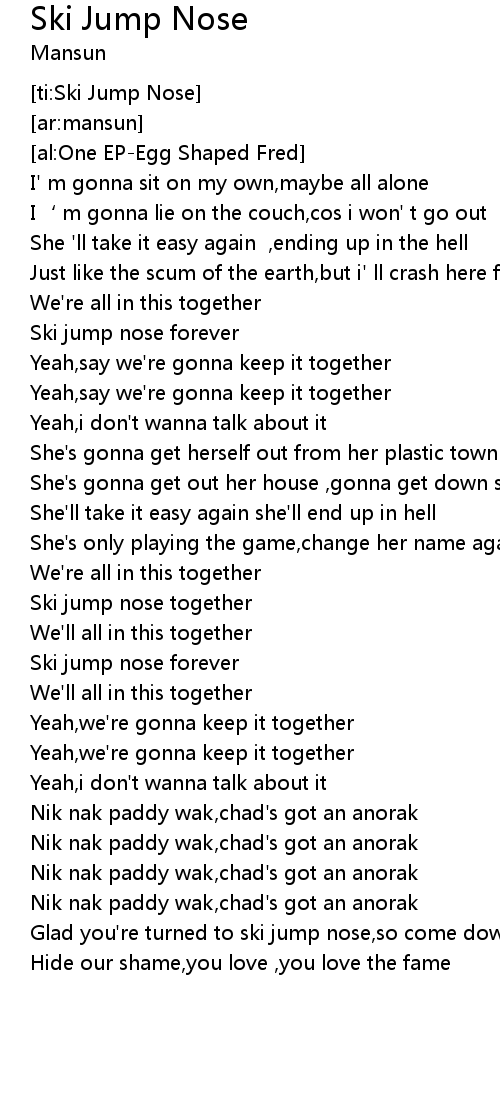 | [00:59.66] | Ski jump nose forever |