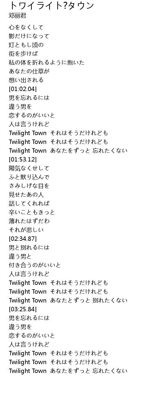 | [01:41.88] | Twilight Town あなたをずっと 忘れたくない |