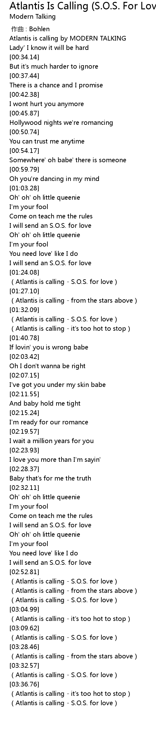 | [00:03.60] | Atlantis is calling by MODERN TALKING |