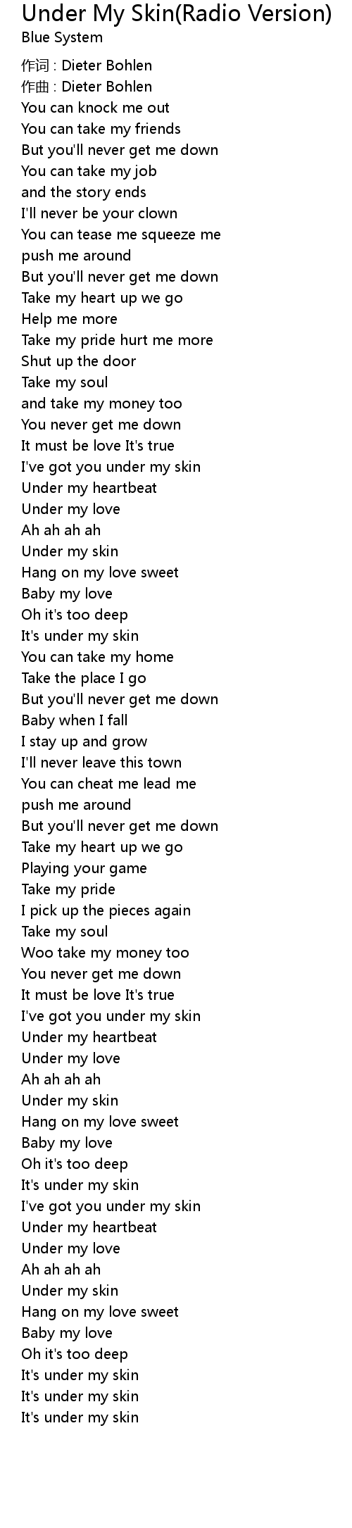 | 作词 : Dieter Bohlen | |