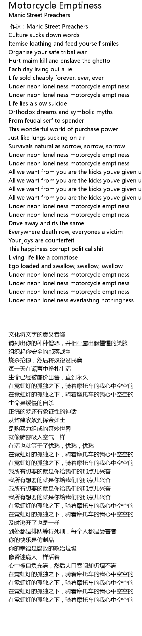 | [00:00.00] | 作词 : Manic Street Preachers |