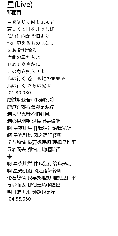 | [02:23.110] | 啊 星夜灿烂 伴我独行给我光明 |