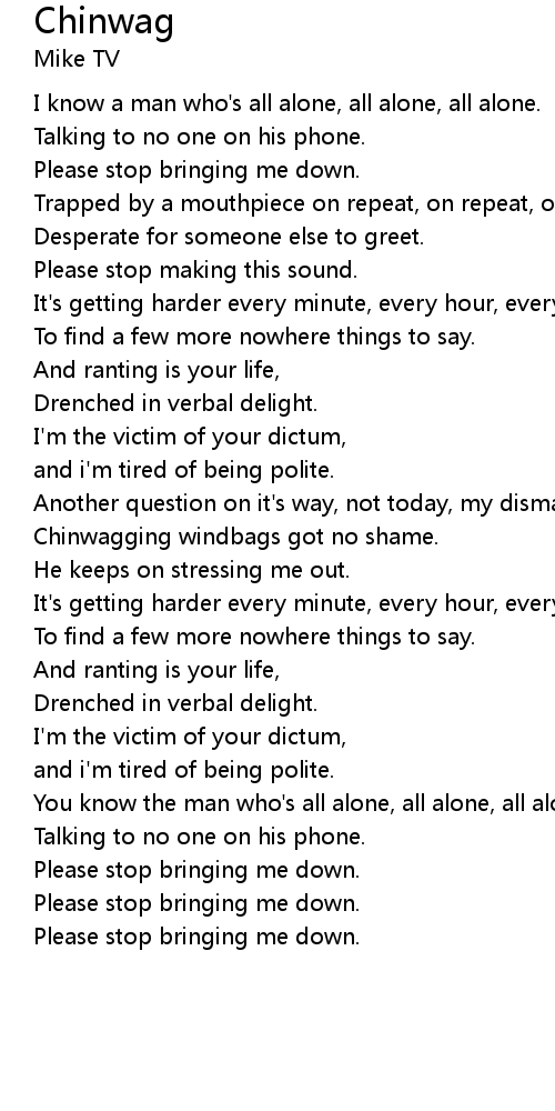| [00:50.500] | Chinwagging windbags got no shame. |
