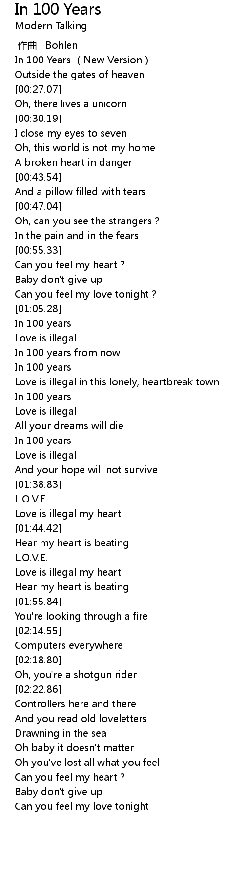 | [01:16.94] | Love is illegal in this lonely, heartbreak town |