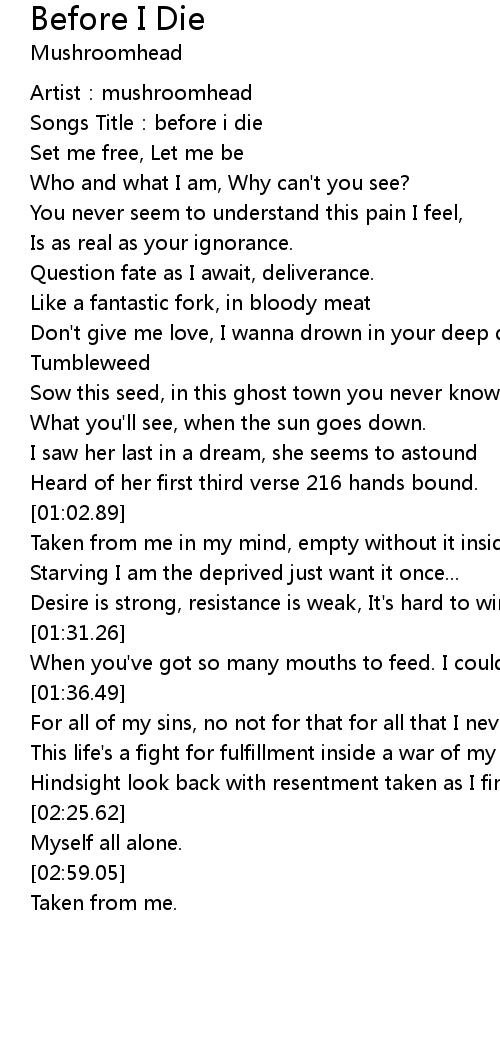 | [00:12.94] | Songs Title: before i die |