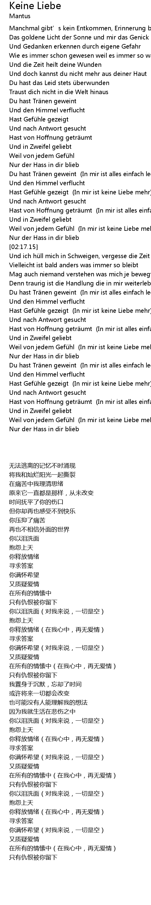 | [03:23.32] | Hast Gefühle gezeigt (In mir ist keine Liebe mehr) |