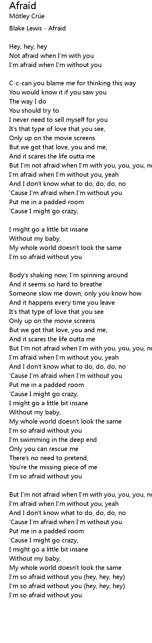 'Cause I'm afraid when I'm without you