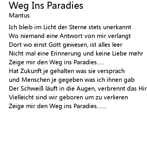 | 歌曲 | Weg Ins Paradies |
