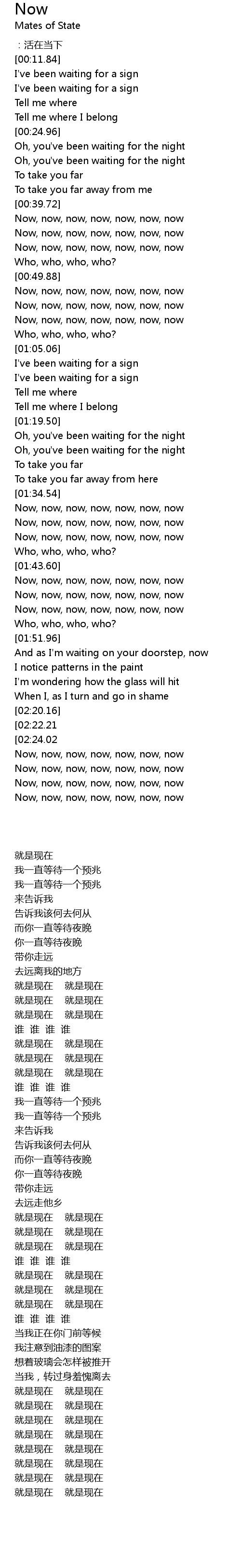 | [02:34.60][02:24.02] | Now, now, now, now, now, now, now |