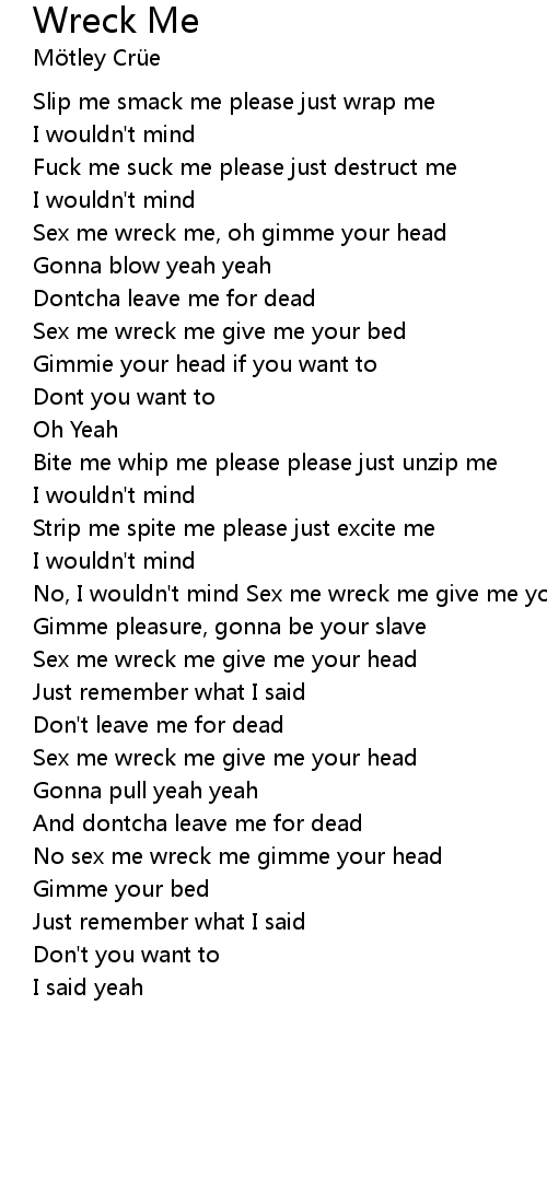 Sex me wreck me give me your head |