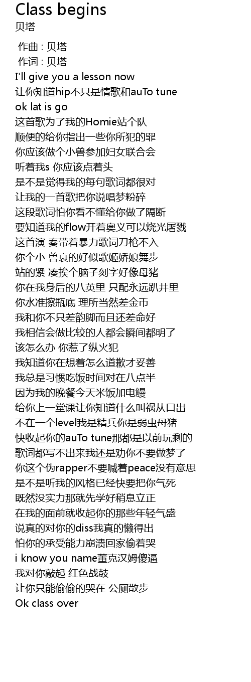 | [01:09.40] | 你这个伪rapper不要喊着peace没有意思 |