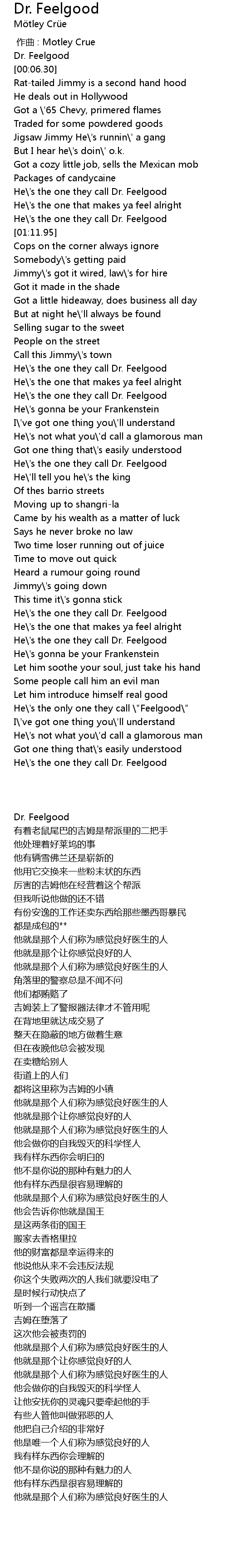 | [01:09.96] | He' s the one they call Dr. Feelgood |