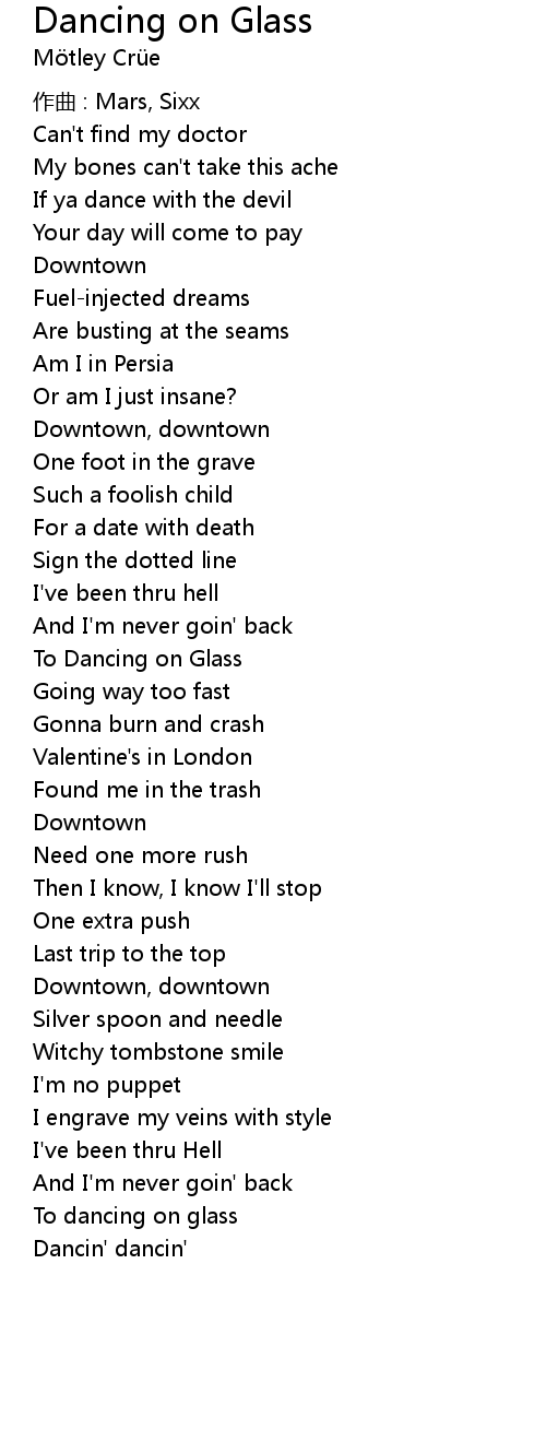 | 歌曲 | Dancing on Glass |