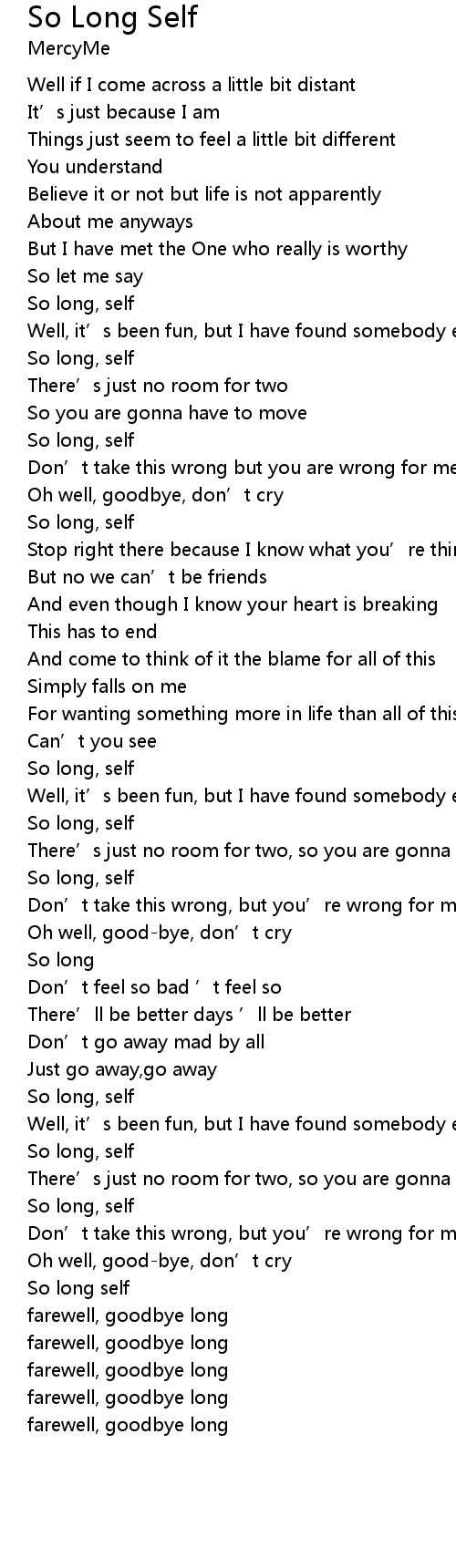| [00:41.88] | Well, it’s been fun, but I have found somebody else |