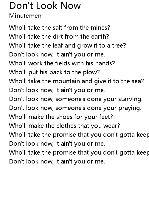 Don't look now, it ain't you or me. |