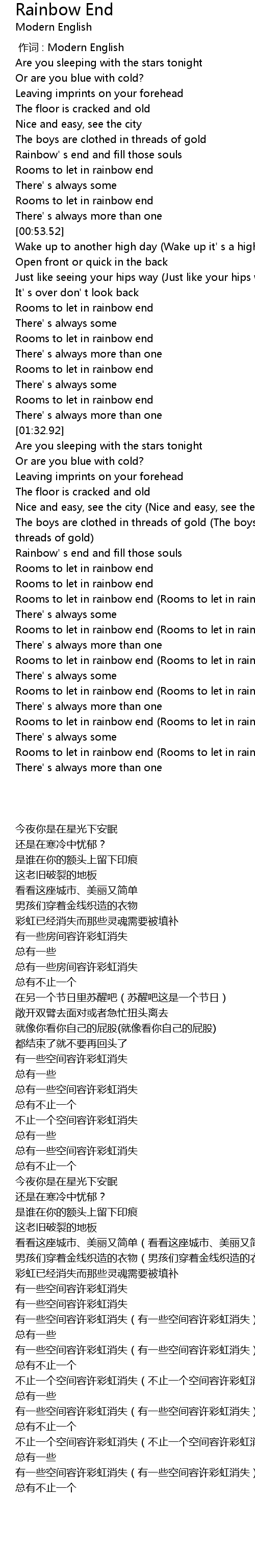 | [02:38.43] | Rooms to let in rainbow end Rooms to let in rainbow end |