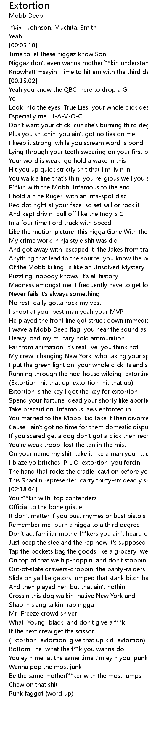 | [03:00.97] | Extortion extortion give that up kid extortion |