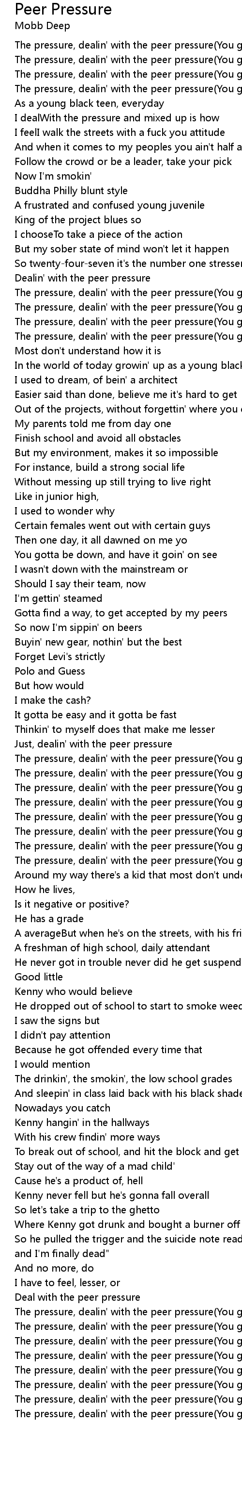 The pressure, dealin' with the peer pressure(You gotta find a way to deal with) |
