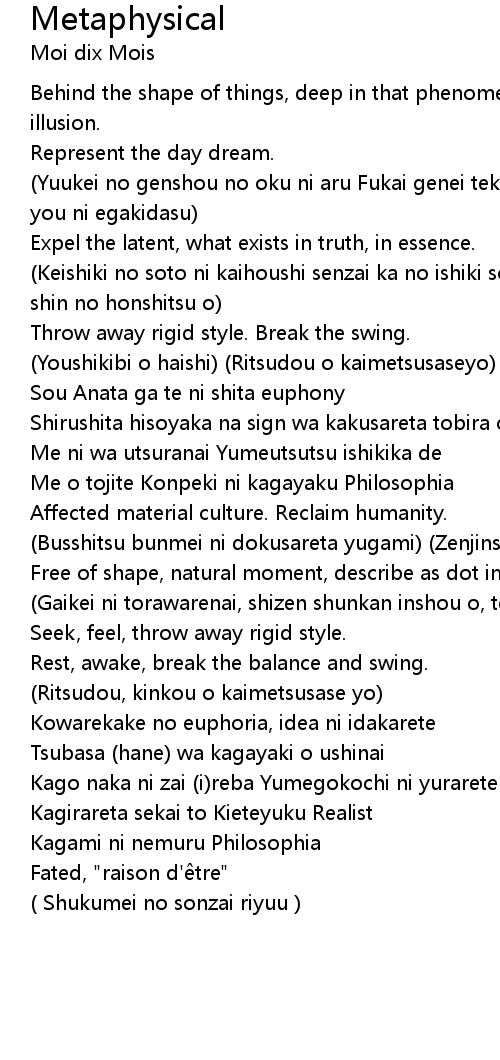 | (Keishiki no soto ni kaihoushi senzai ka no ishiki sono haigo ni aru mono no shin no honshitsu o) | |
