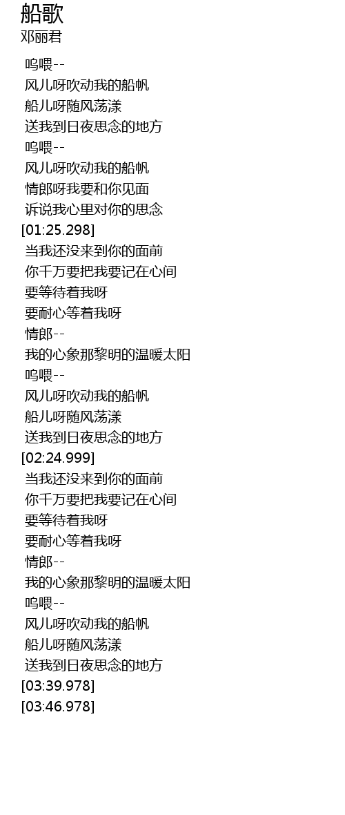 | [03:26.978] | 船儿呀随风荡漾 |