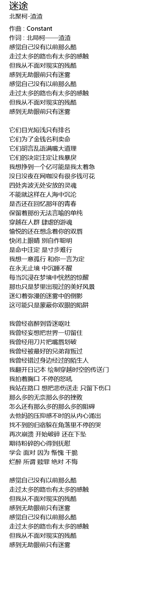 | 作词 : 北局柯——渣渣 | |