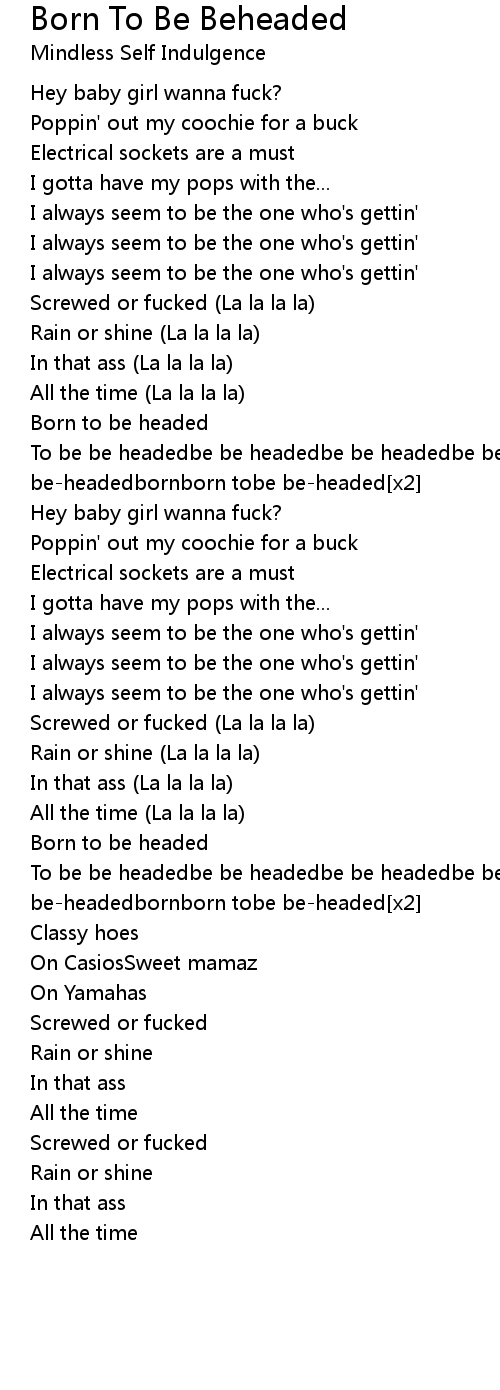 To be be headedbe be headedbe be headedbe be be headed born born to be born be-headedbornborn tobe be-headed[x2] |