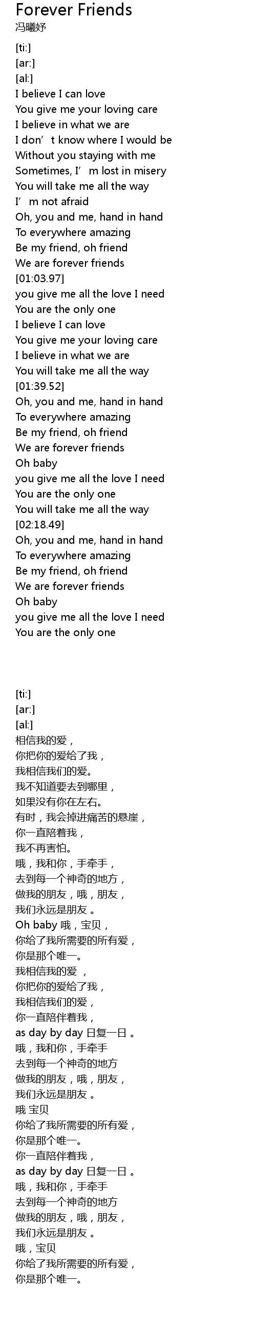 | [02:30.92] | We are forever friends |