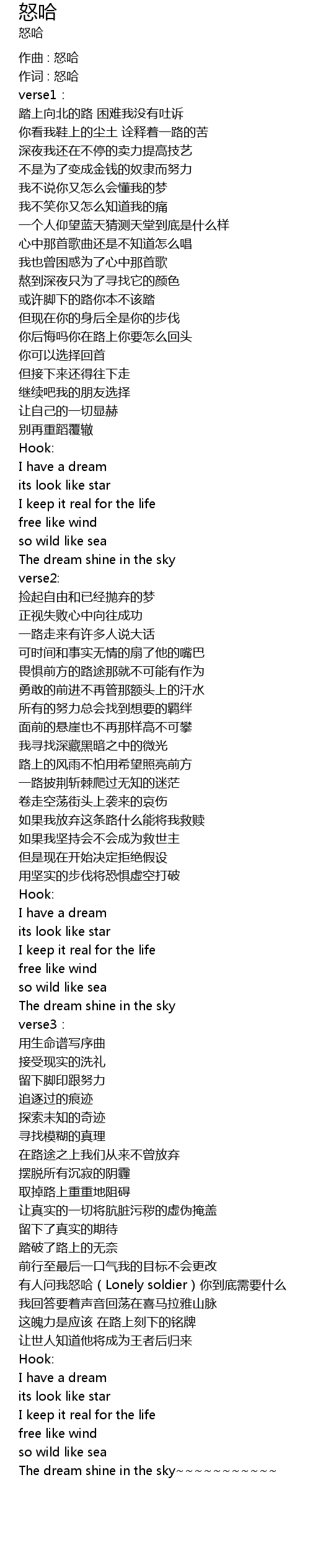 | 有人问我怒哈(Lonely soldier)你到底需要什么 | |