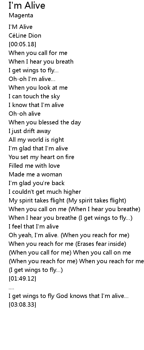 | [01:35.48] | Oh yeah, I' m alive. When you reach for me |