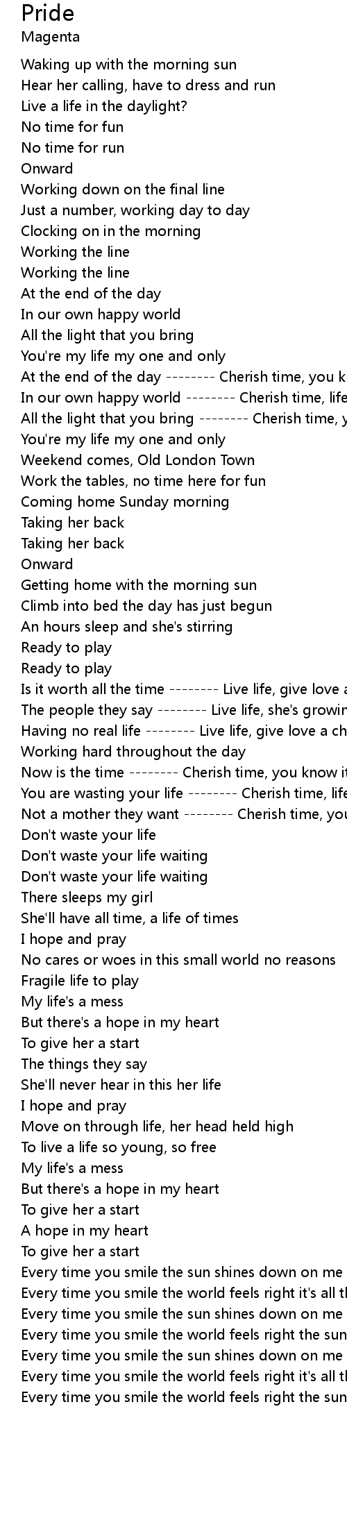 | Every time you smile the world feels right the sun shines on me | |
