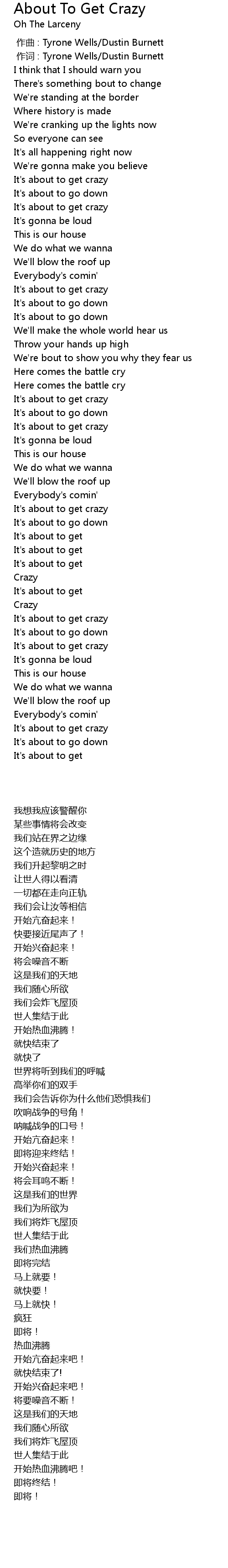 | 歌曲 | About To Get Crazy |
