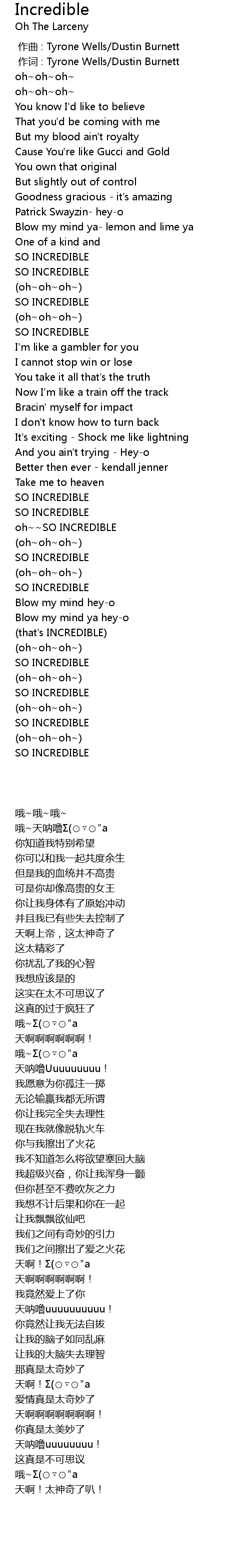 | [01:46.99] | oh~~SO INCREDIBLE |
