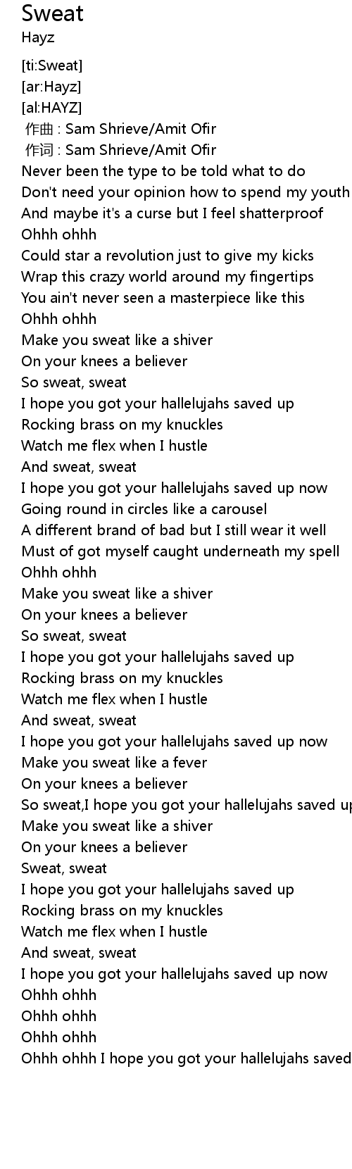 | [02:51.63] | So sweat, I hope you got your hallelujahs saved up |