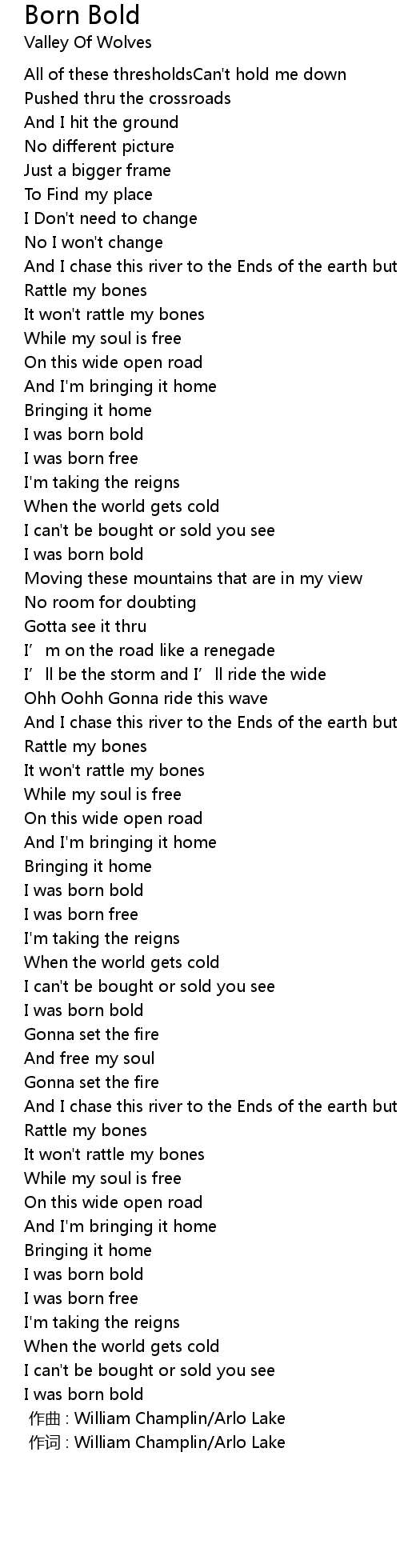 | [02:54] | I was born bold |