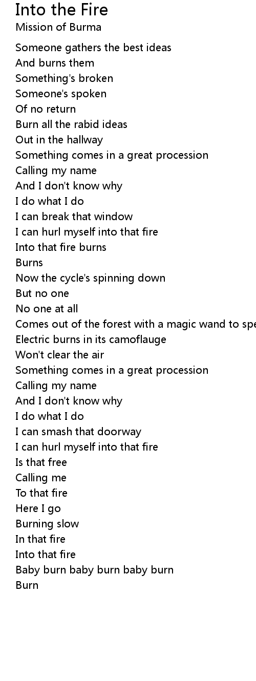 Into that fire burns |