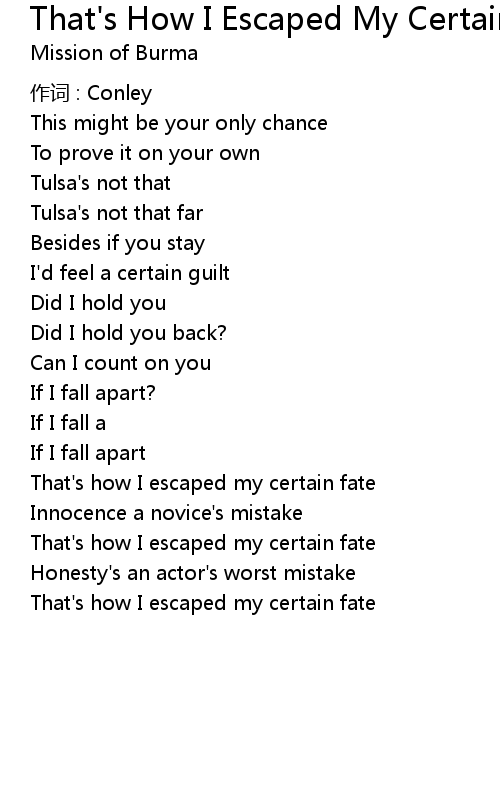 | 歌曲 | That's How I Escaped My Certain Fate |