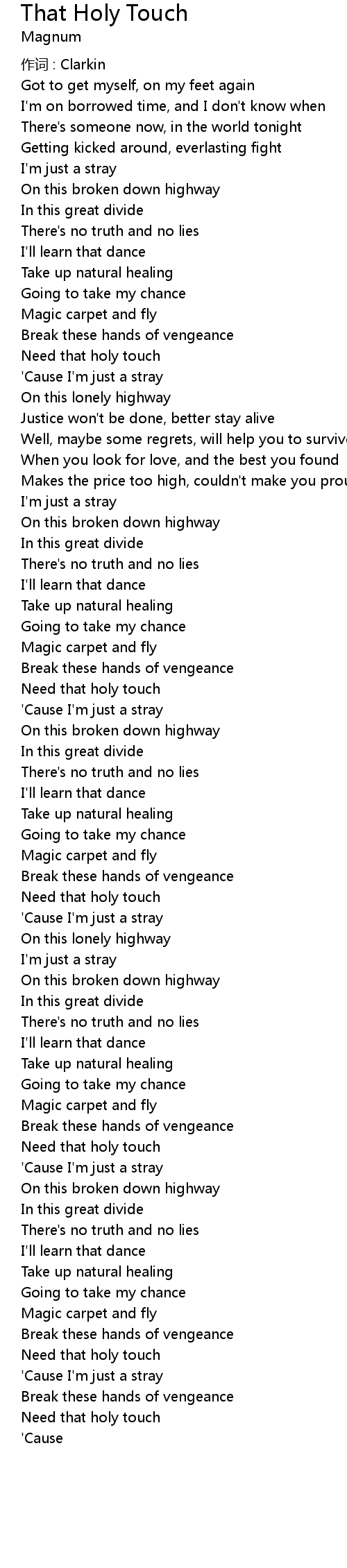 | 歌曲 | That Holy Touch |